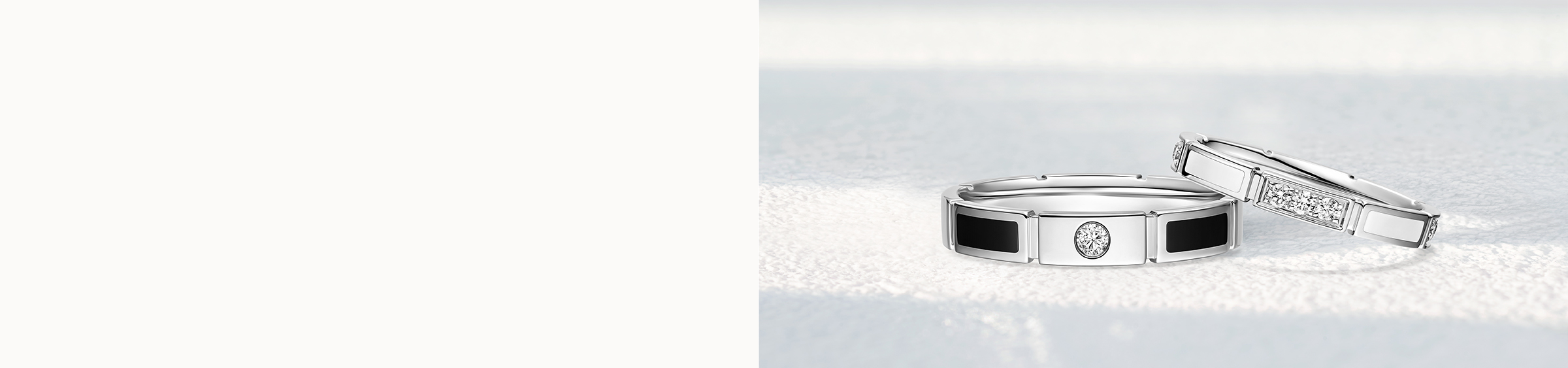 DR You&Me Collection utilizes a patchwork structure with white and black diamonds echoing each other to express "you and me" as a whole. The white diamonds represent the sincerity of love and the black diamonds represent the eternity of love. You&Me wedding rings are artfully and stylishly modernized for everyday stacking on the finger, building happiness for love.
